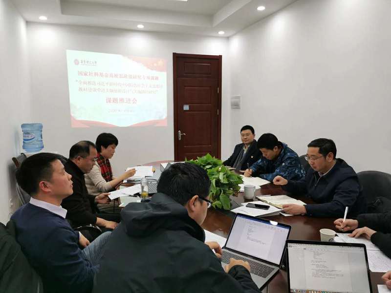 为更好推进习近平新时代中国特色社会主义思想进教材进课堂进头脑,1月11日“全面推进习近平新时代中国特色社会主义思想进教材进课堂进头脑创新设计与实施路径研究”课题推进会在我院顺利举行。太阳集团党委副书记宋来,课题组成员陈俊傲、徐国民、邱卫东、汪斌锋以及部分教师与学生代表参与了此次课题推进会。会议由徐国民主持。