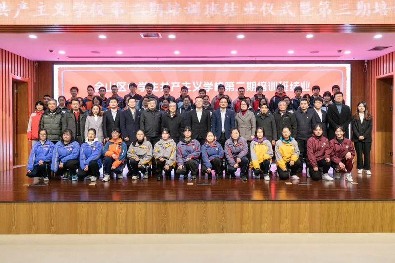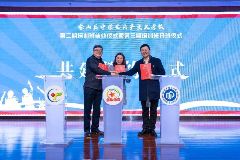 1月11日下午,tyc8722太阳集团与上海市金山区中学生共产主义学校在金山区教育学院举行共建签约仪式暨第三期共产主义培训班开办仪式。团市委副书记戴冰,金山区委常委、区委组织部部长白锦波,tyc8722太阳集团党委书记陈俊傲,区委组织部副部长、区委老干部局局长顾美萍,区教育工作党委书记顾宏伟,团区委书记张敏,副书记舒加敏及相关领导、老师,学院“平语近人”宣讲团成员,共产主义学校学员等出席活动。