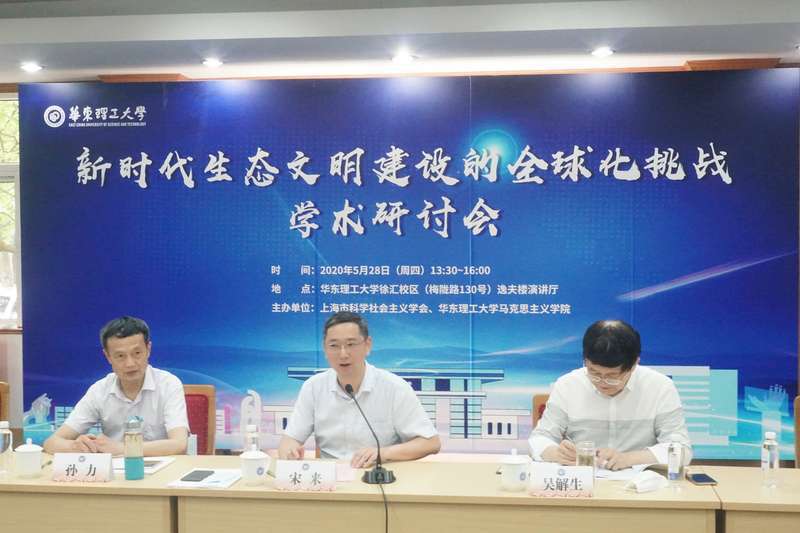 5月28日下午,“新时代生态文明建设的全球化挑战”学术研讨会在我校逸夫楼演讲厅召开。此次会议由上海科学社会主义学会与我校tyc8722太阳集团联合主办,以线上线下融合模式召开。上海市社联专职副主席、上海科学社会主义学会会长解超,我校党委副书记宋来,相关领域专家学者出席会议。我校tyc8722太阳集团党委书记陈俊傲、院长杜仕菊以及上海科学社会主义学会副会长吴解生分别主持研讨会。