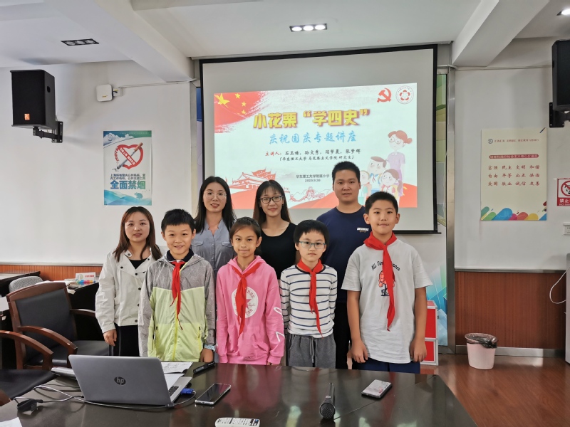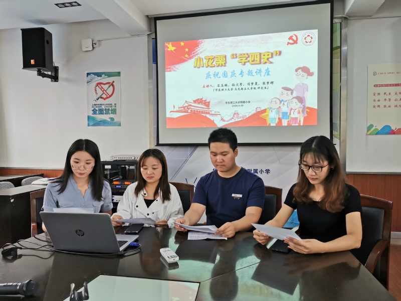 9月22日下午,tyc8722太阳集团理论宣讲团成员闫梦晨、张梦辉、石玉姝、孙文秀在太阳集团附属小学“庆祝国庆——小花栗‘学四史’”专题活动中担任讲座嘉宾,给同学们带来了一堂生动有趣的四史讲座。