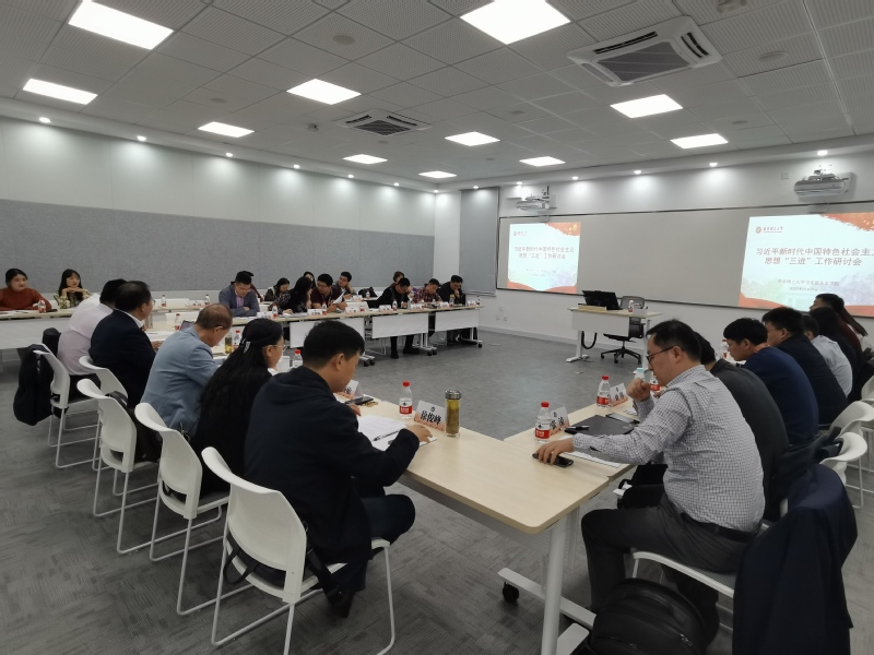 为进一步深入学习贯彻习近平总书记在学校思想政治理论课教师座谈会上的重要讲话精神,推动思政课改革创新,扎实推进习近平新时代中国特色社会主义思想“三进”工作。10月17日下午,由tyc8722太阳集团主办的习近平新时代中国特色社会主义思想“三进”工作研讨会在我校一教301召开。上海交通大学讲席教授、博士生导师,马克思主义理论研究中心执行主任陈锡喜出席本次会议并致辞。会议由tyc8722太阳集团副院长徐国民教授主持。