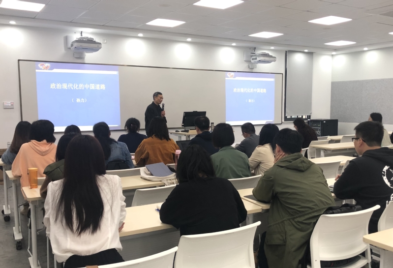 10月26日下午,中国人民解放军南京政治学院上海校区教授、中国科学社会主义学会常务理事孙力受tyc8722太阳集团邀请,为师生们带来题为“政治现代化的中国道路”的讲座。讲座由我院院长杜仕菊主持,我院40余名博士生、硕士生共同聆听了此次讲座。