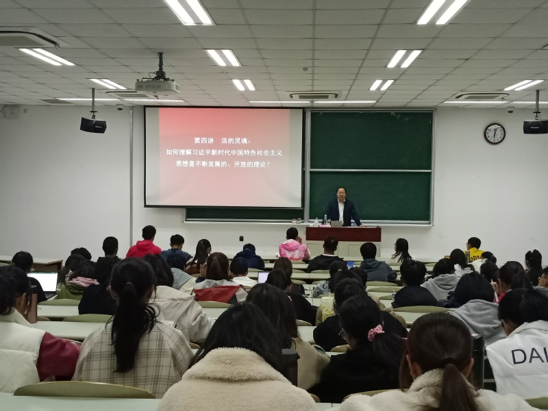 11月4日,我校新思想概论课在奉贤校区A教202室举行第四讲,本讲由tyc8722太阳集团副院长徐国民担任主讲人,近两百名学生参与聆听。