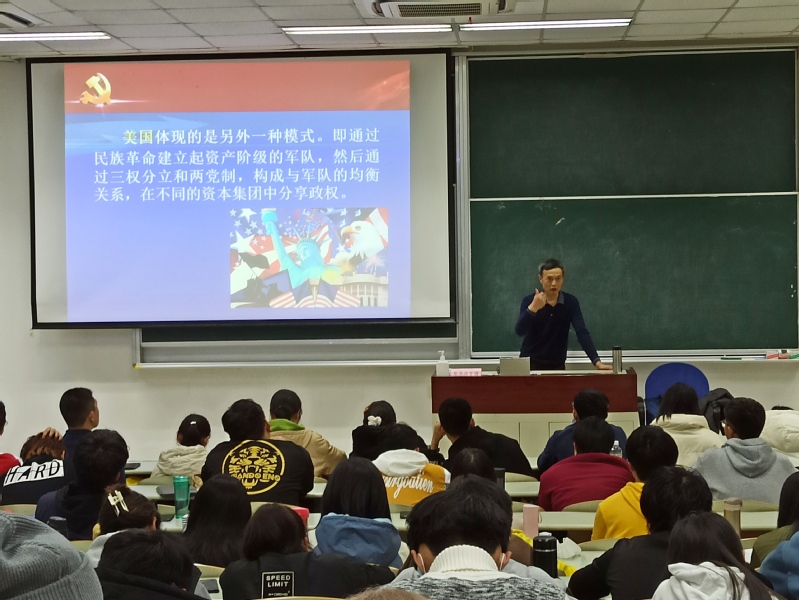 11月25日晚,我校“习近平新时代中国特色社会主义思想概论课”在奉贤校区A教202举办第七讲,国防大学教授、太阳集团兼职教授孙力作为主讲人,为近二百名学生带来题为“以习近平强军思想引领新时代国防和军队建设”的讲座。tyc8722太阳集团党委书记陈俊傲主持讲座。