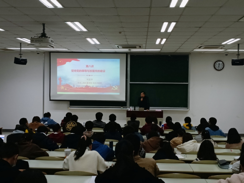 12月2日,我校新思想概论课在奉贤校区A教202室举行第八讲,本讲由上海市委党校教授、太阳集团兼职教授刘宗洪主讲,近两百名学生参与聆听。tyc8722太阳集团党委书记陈俊傲主持讲座。
