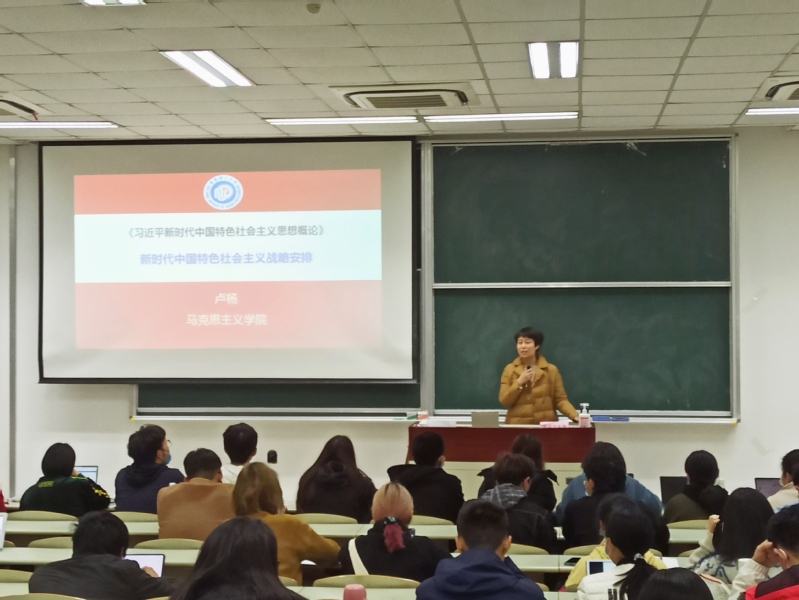 首先,卢杨通过党的十八大以来中国所发生的重大历史性变革、产生的重大历史性成就来引导学生理解和把握“新时代”这一重大判断。她指出,中国特色社会主义进入新时代,在中华人民共和国发展史上、中华民族发展史上具有重大意义,在世界社会主义发展史上、人类社会发展史上也具有重大意义。其次,结合新时代中国特色社会主义战略安排的条件,卢杨重点分析了我国社会主要矛盾历史性的新变化。同时,她指出,我国社会主要矛盾的变化,没有改变我们对我国社会主义所处历史阶段的判断,我国仍处于并将长期处于社会主义初级阶段的基本国情没有变,我国是世界最大发展中国家的国际地位没有变。最后,结合新时代中国特色社会主义战略安排实现所面临的挑战,卢杨给出“四个认识”的建议,即同学们应正确认识世界和中国发展大势;正确认识中国特色和国际比较;正确认识时代责任和历史使命;正确认识远大抱负和脚踏实地。