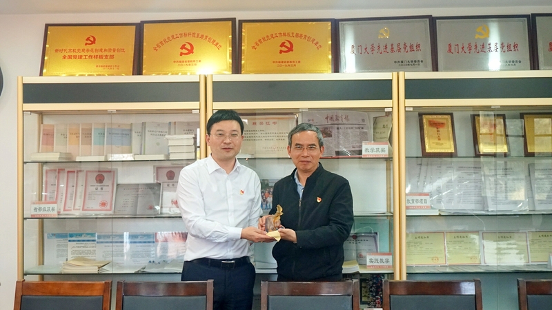 最后,陈俊傲代表我院向厦门大学tyc8722太阳集团赠送了纪念品并合影留念。