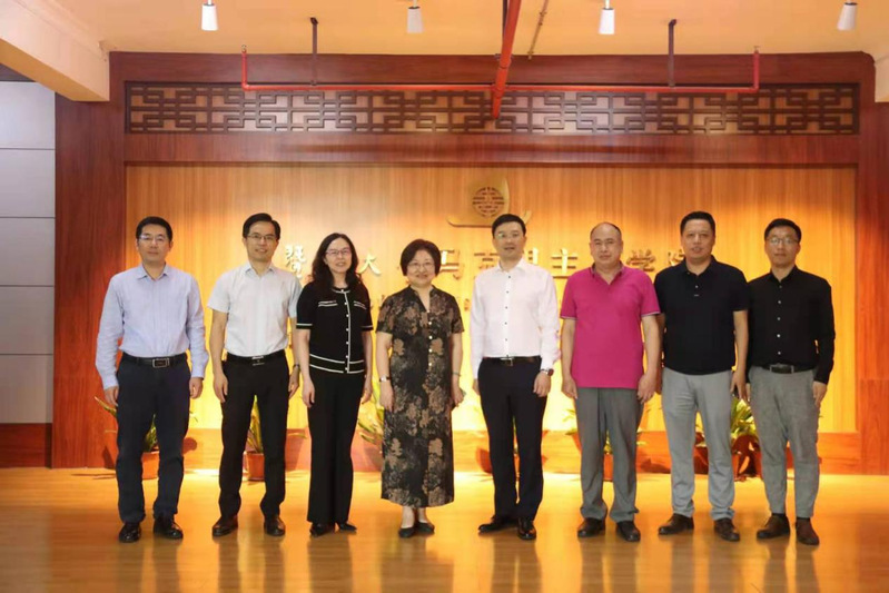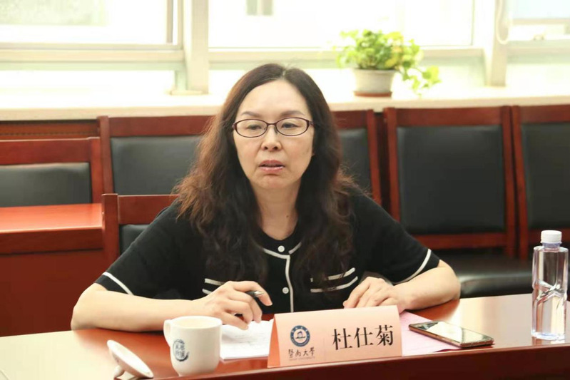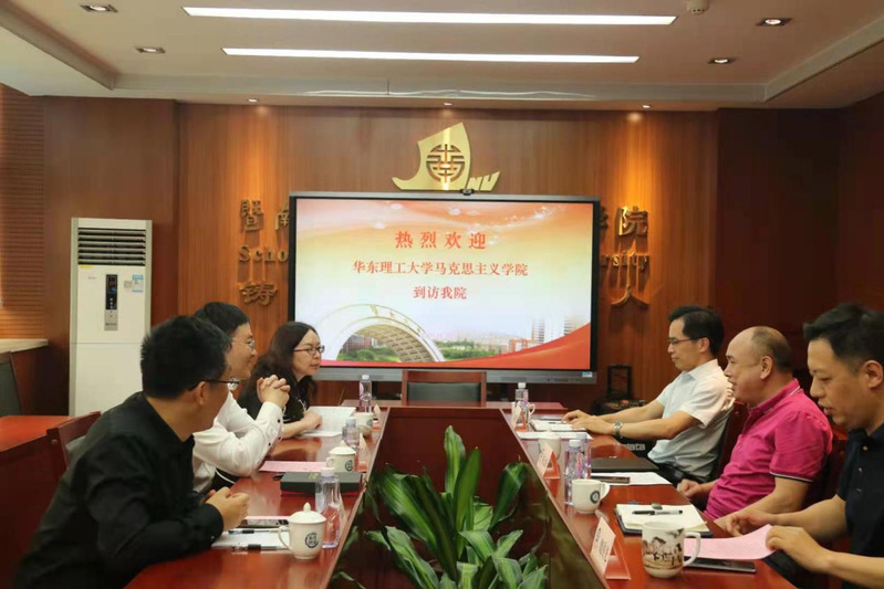 4月19日下午,tyc8722太阳集团院长杜仕菊一行赴暨南大学察学习。暨南大学tyc8722太阳集团党总支书记柏元海,党总支副书记、副院长魏传光,副院长陈联俊、办公室主任曾煜东,研究生公共课教研室主任史军,形势与政策教研室主任何小勇共同参加此次座谈会,会议由柏元海主持。