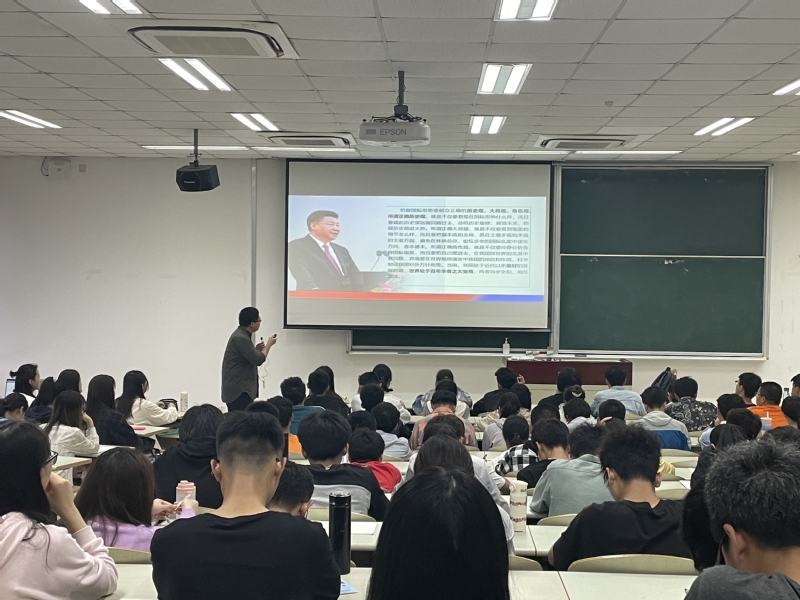 5月19日晚,“百年大变局中的世界与中国”——习近平新时代中国特色社会主义思想概论课在我校奉贤校区A101室举办第十二讲,tyc8722太阳集团青年教师张驰担任主讲人,tyc8722太阳集团党委书记陈俊傲、院长杜仕菊与二百余名学生共同聆听了讲座。