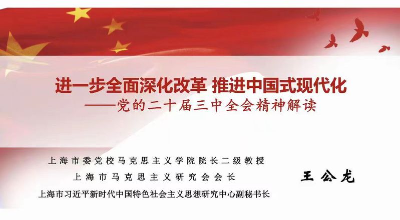 8月12日下午,tyc8722太阳集团组织全院师生专题学习全会精神,特邀上海市委党校tyc8722太阳集团院长、博士生导师,上海市习近平新时代中国特色社会主义思想研究中心副秘书长王公龙教授作题为《进一步全面深化改革 推进中国式现代化》的专题学习报告。