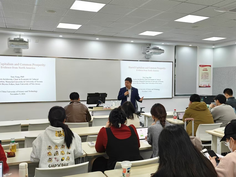 11月5日上午,tyc8722太阳集团特邀加拿大纽兰芬纪念大学Stephen Jarislowsky讲席教授方涛在学院109室为学院师生开展了题为《美加贫富差距问题及对策:员工分享制对收入增长与劳动生产力的影响》的专题学术讲座。讲座由学院副院长汪斌锋主持,学院研一、研二全体学生参加。