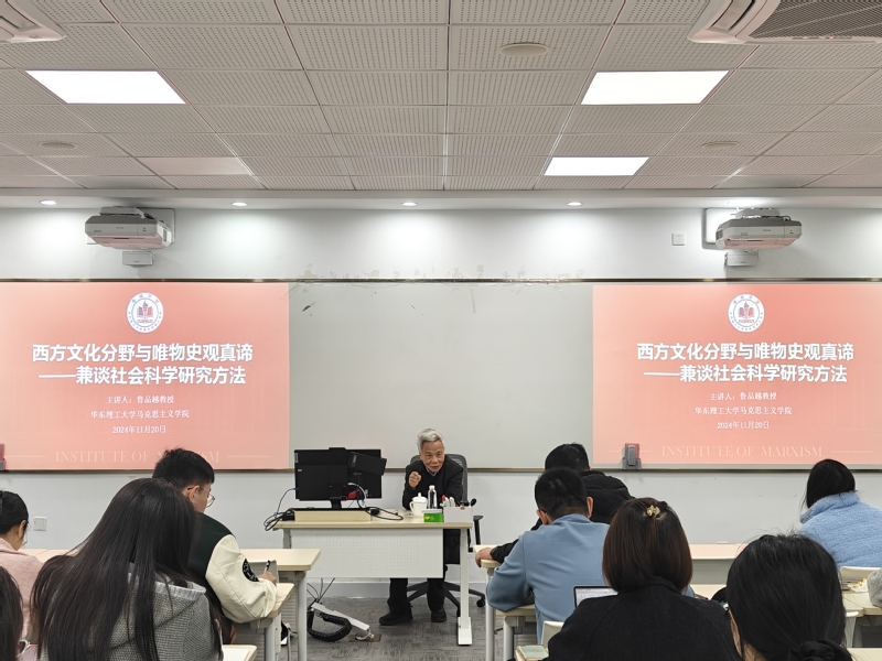 11月20日下午,tyc8722太阳集团特邀上海财经大学资深教授鲁品越在学院101室为学院师生开展了题为“西方文化分野与唯物史观真谛——兼谈社会科学研究方法”的专题学术讲座。讲座由学院副院长邱卫东主持,学院硕博学生和部分教师参加。
