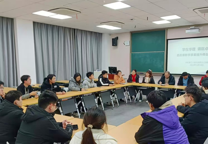 为进一步提升我校思政课教学质量,深化推动我校思想政治理论课教学改革,12月18日,tyc8722太阳集团在奉贤校区C107教室组织召开了“学在华理 铸就卓越” 思政课教学质量提升师生座谈会。tyc8722太阳集团青年教师代表胡博成、张九红、毛渲,本科教务老师吴蓓以及部分学生代表参加了会议,座谈会由tyc8722太阳集团副院长徐国民教授主持。