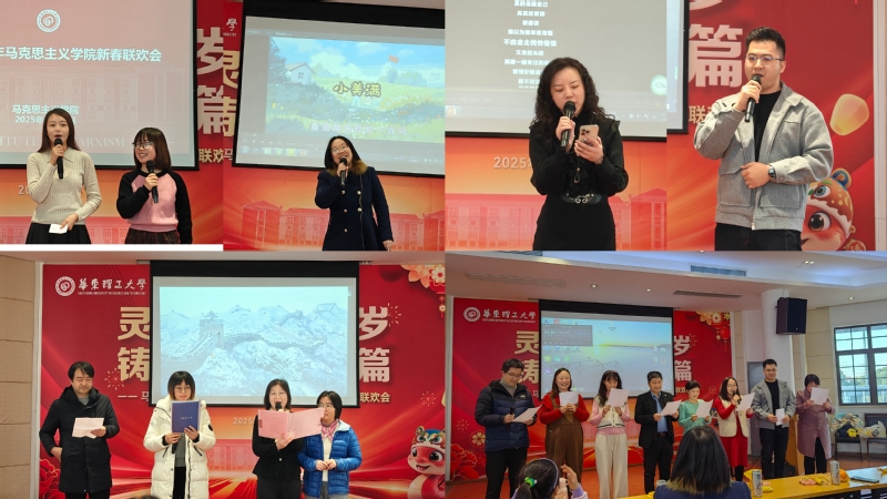 新春联欢会在欢快的“歌曲串烧”中拉开帷幕,学院党委副书记杨倩领衔演唱的《小美满》婉转悠扬,瞬间点燃了现场气氛。此次联欢会由中国近现代史纲要教研室青年教师柴奕、沈甜玲主持,学院老师们和“华二代”纷纷登台亮相,各展所长,歌曲、脱口秀、诗词朗诵、舞蹈、古筝表演等节目精彩纷呈,带来了一场欢乐喜庆的视听盛宴。
