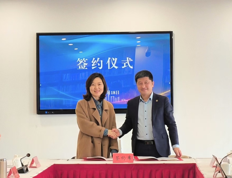 王爱祥与陈颖婕代表双方签订共建协议,今后双方将在共建研修基地、共享教学资源、合作科研资政、开展党建结对、发挥社会职能等方面开展共建合作。