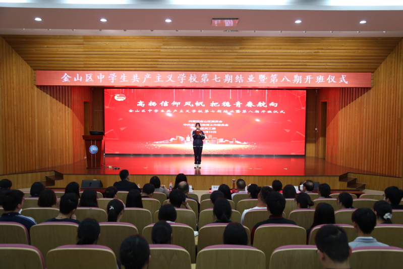 5月10日下午,金山区中学生共产主义学校第八期开班仪式在金山区教育学院举行。金山区委常委、组织部部长吉维通过视频向全体学生寄语。金山团区委书记乔楚、区教育学院党总支书记方德平、区教育局副局长陈艳、团区委副书记张鹏、区委党校原常务副校长张汉为,我校tyc8722太阳集团党委副书记杨倩出席活动。全体学员近100人参加。