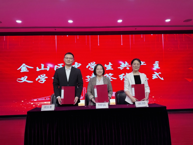 杨倩代表tyc8722太阳集团与共青团金山区委员会、金山区教育工作党委签订合作协议。三方将整合优质资源,构建“跨校”思政教育共同体,打造具有示范意义的青少年思想政治教育平台。自2020年合作以来,学院已为金山区中学生共产主义学校开发了多门精品课程,有效提升了“青马工程”的实施质量。