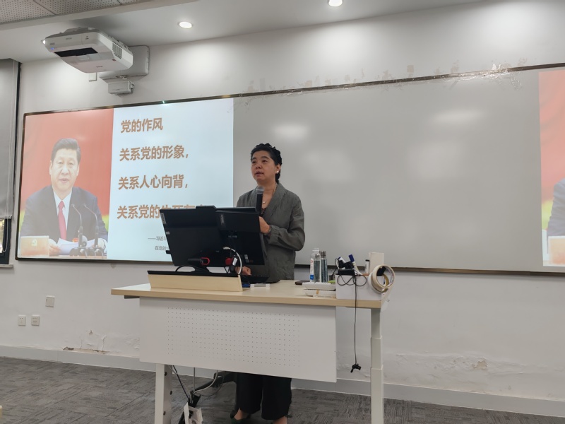 孙叶青首先从国际背景和历史维度出发,回顾了中国共产党加强作风建设的发展历程。接着,她从深刻领会学习教育的重大意义、重温中央八项规定的主要内容、违反中央八项规定精神的主要表现、增强贯彻中央八项规定精神的政治思想行动自觉等四个方面进行系统阐述,深入剖析了中央八项规定精神的丰富内涵和实践要求。孙教授结合大量案例,深入浅出地分析了当前作风建设面临的形势和挑战,提出了加强党的作风建设的有效路径和举措。最后,她号召全体师生党员坚定政治立场、保持清醒认识,自觉贯彻落实中央八项规定精神,以优良作风为学业、事业顺利发展保驾护航。